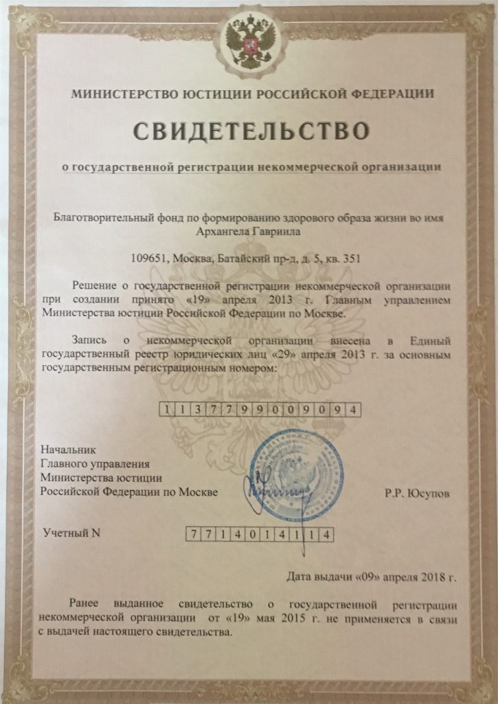 Благотворительный фонд по формированию здорового образа жизни во имя Архангела Гавриила